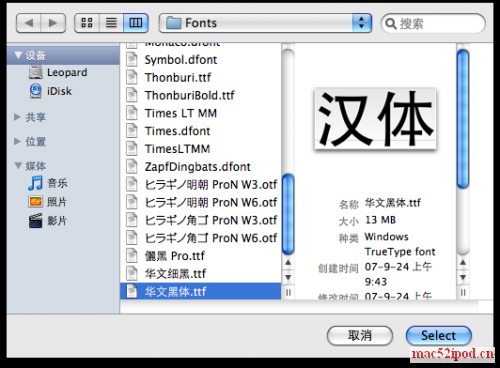 1,打开VLC的Preferences窗口(按苹果键+,),依次选择Video -> Subtitles/OSD -> Text renderer,右边的设置区第一项为Font,点击Browse按钮选择一项中文字体,如下图: